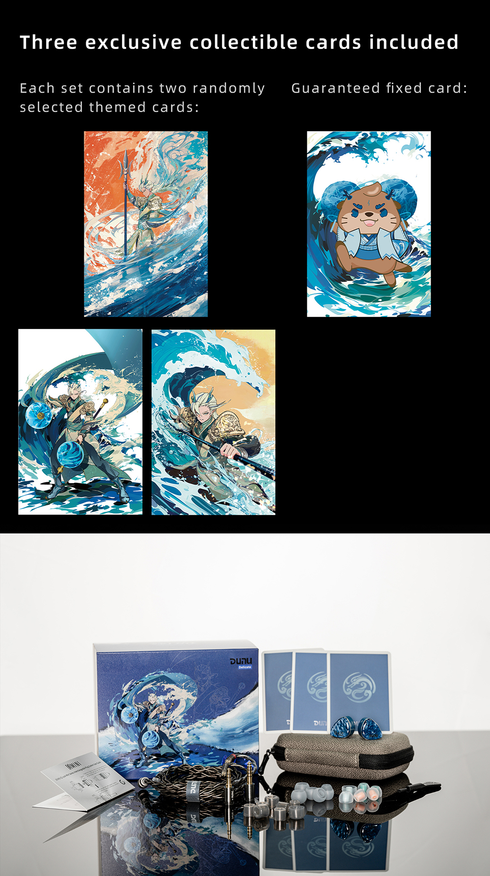 DUNU DN142 promises supreme comfort to its users. The pair is crafted in collaboration with HeyGears, the leading 3D printing solution provider in the industry. The shells are extremely comfortable as they have a lightweight and ergonomic shape. DUNU has designed the pair in a vivid color profile inspired by AO Bing. The face covers reflect the depths and the energy of Ao Bing. DUNU also includes three collectible designer cards in the package, two of which will feature unique artwork inspired by Ao Bing’s calm image.