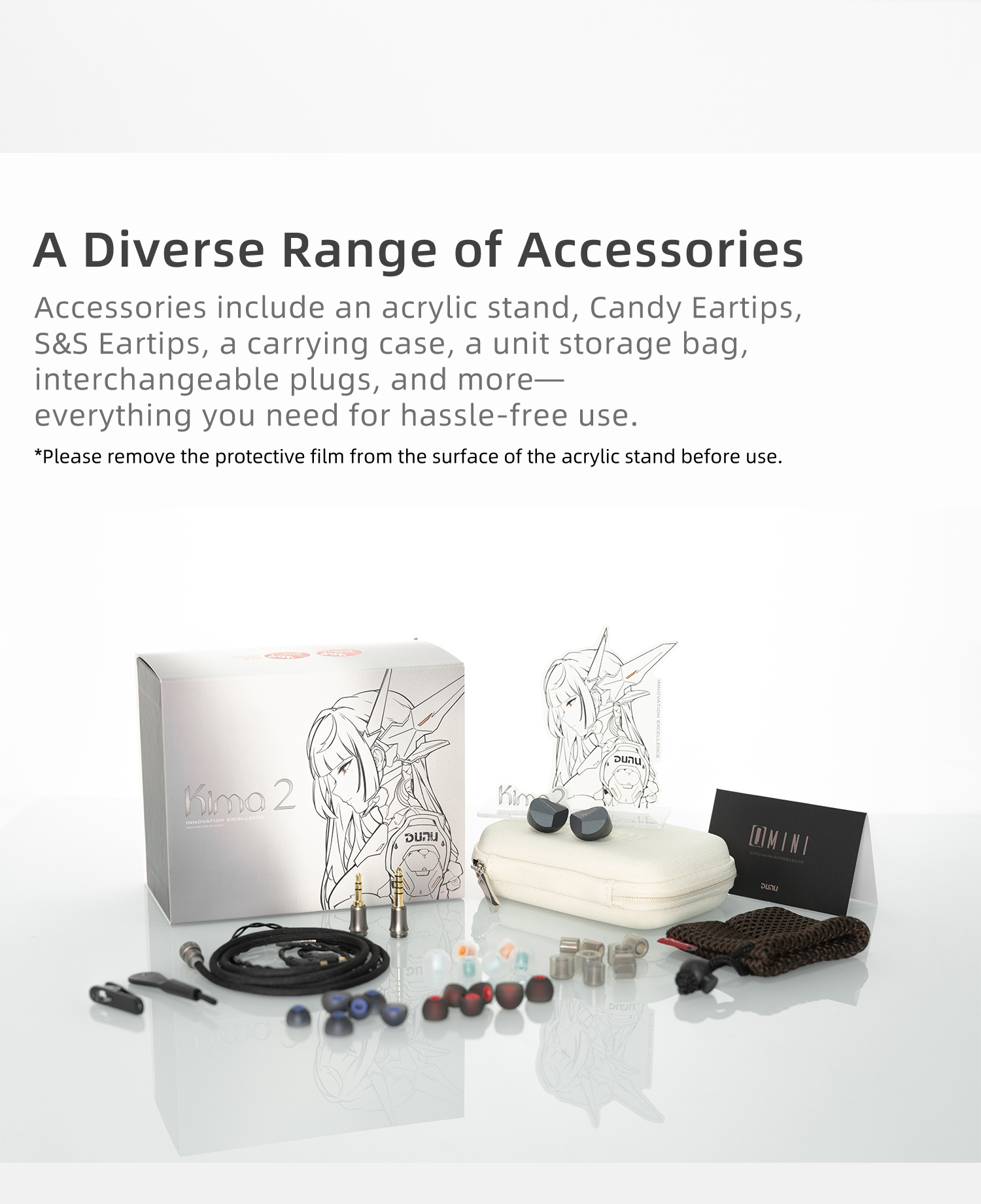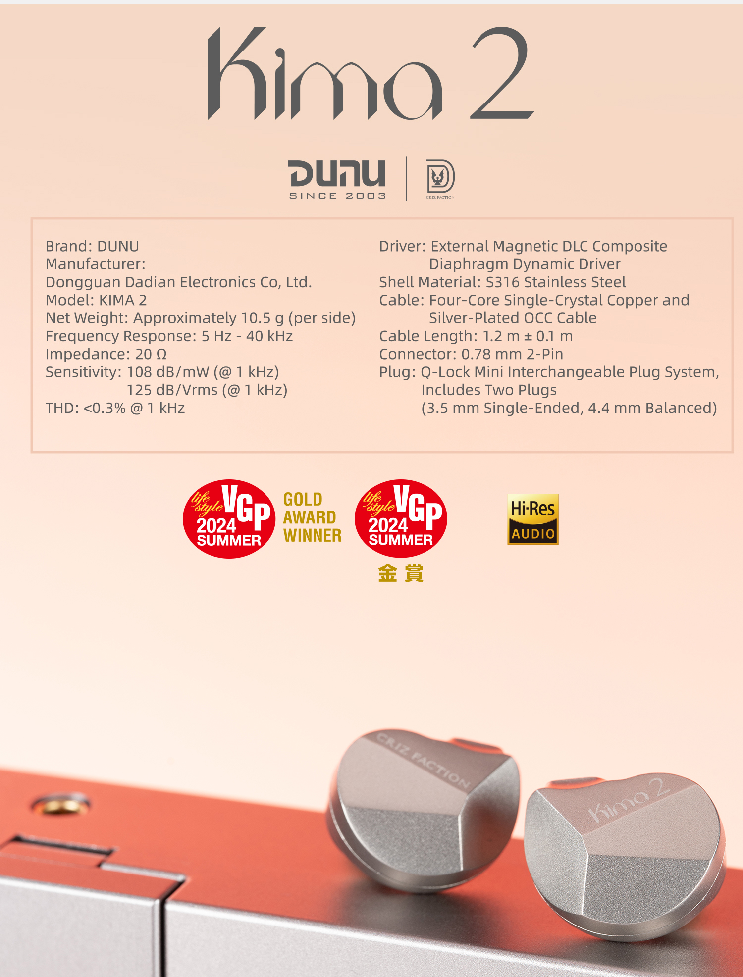 DUNU Kima 2 is equipped with a new-generation DLC(diamond-like composite) dome diaphragm. It is crafted using an improved deposition process to ensure more uniform DLC deposition, effectively reducing gaps and surface defects. This DD unit produces a crisp, high-resolution sound with ultra-low distortion, fast transients, and a rich, natural tone.