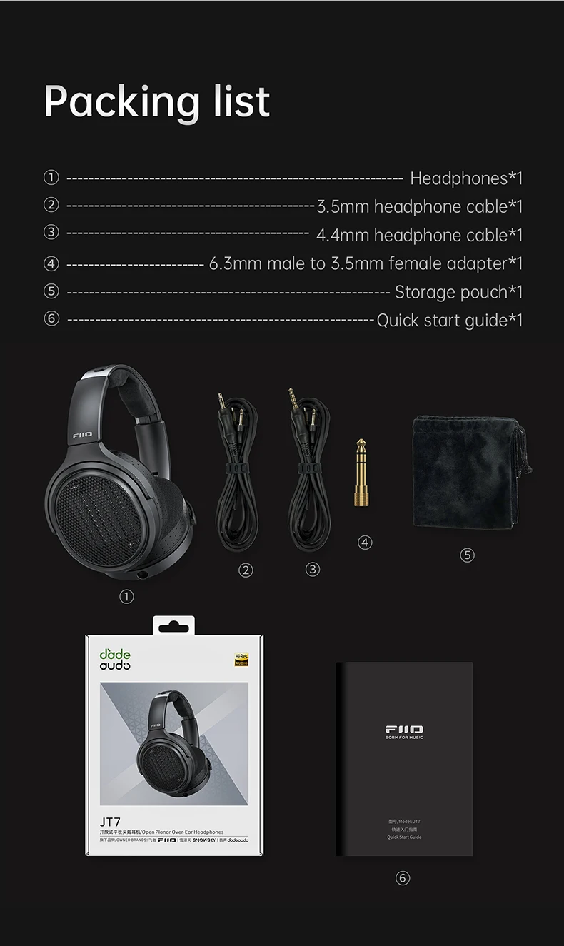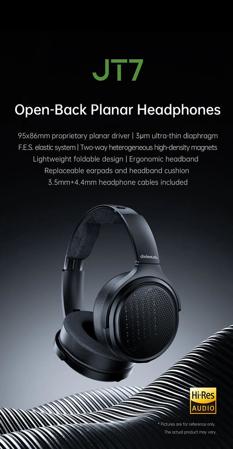 FIiO JT7 is a brand-new open-back over-ear planar magnetic driver headphone built for audiophiles who seek detailed and lively sound with all-day comfort. It utilizes a proprietary 95x86mm planar magnetic driver with a 3µm ultra-thin diaphragm. It adopts the unique F.E.S(FiiO Elastic System) that allows precise signal response, great elasticity, and also adds a powerful bass response while maintaining ultra-low distortion. FiiO has designed the pair with dual high-density neodymium magnets that deliver a high-sensitivity design to the JT7. Through precise engineering, FiiO has utilized a chip-grade 28nm manufacturing process to seamlessly integrate the diaphragm and voice coil. FiiO JT7 is a premium-sounding over-ear headphone that delivers true high-fidelity sound without breaking your bank!! Enjoy the finest details in your favourite music with great comfort available on the FiiO JT7!!