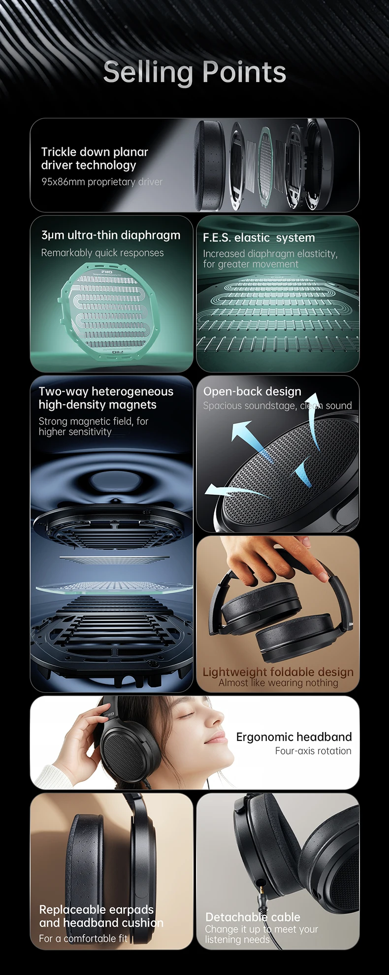 >High-Performance Open-Back Planar Magnetic Driver Headphones.