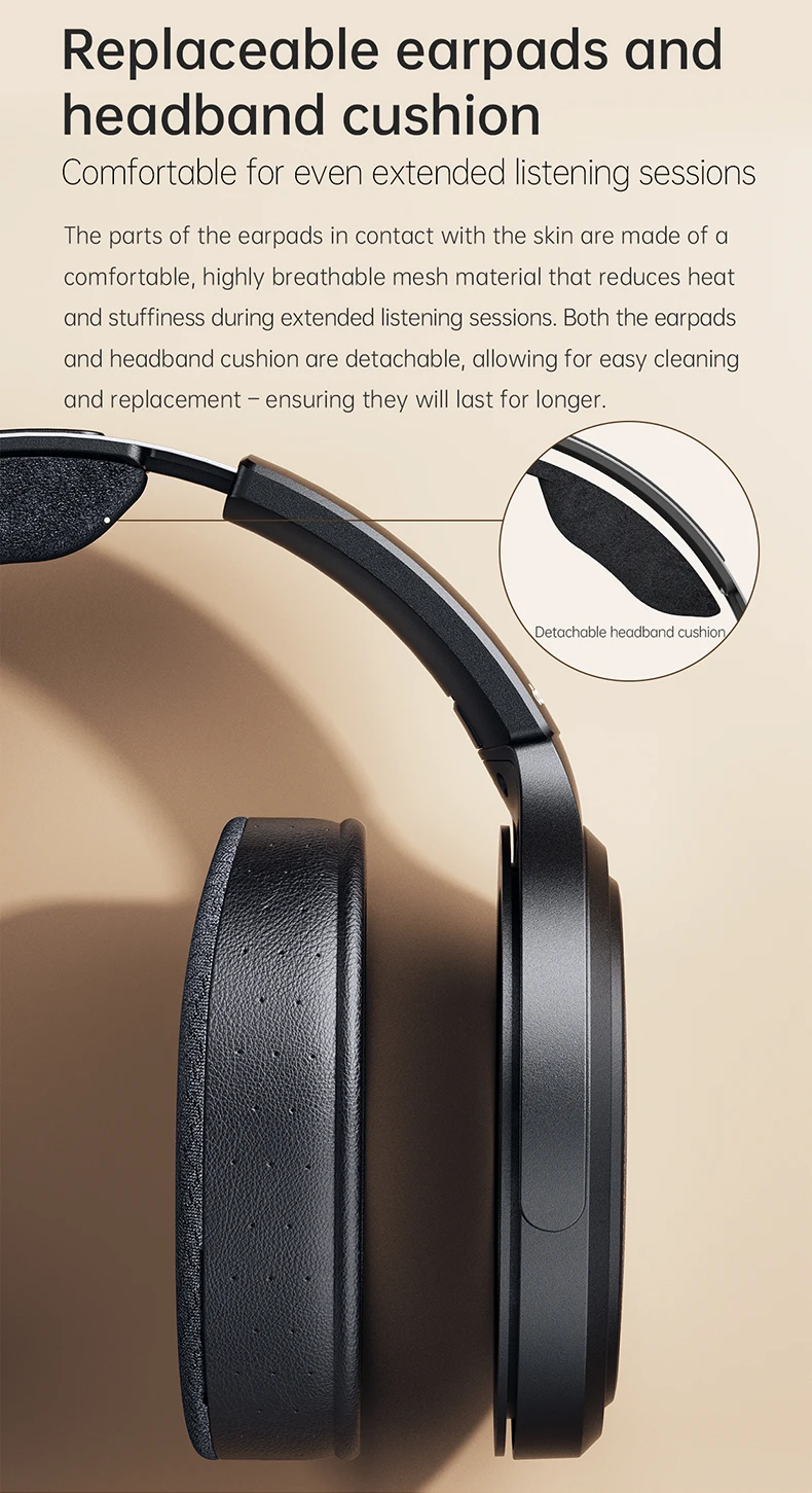 >Replaceable EarPads and Headband Cushion.