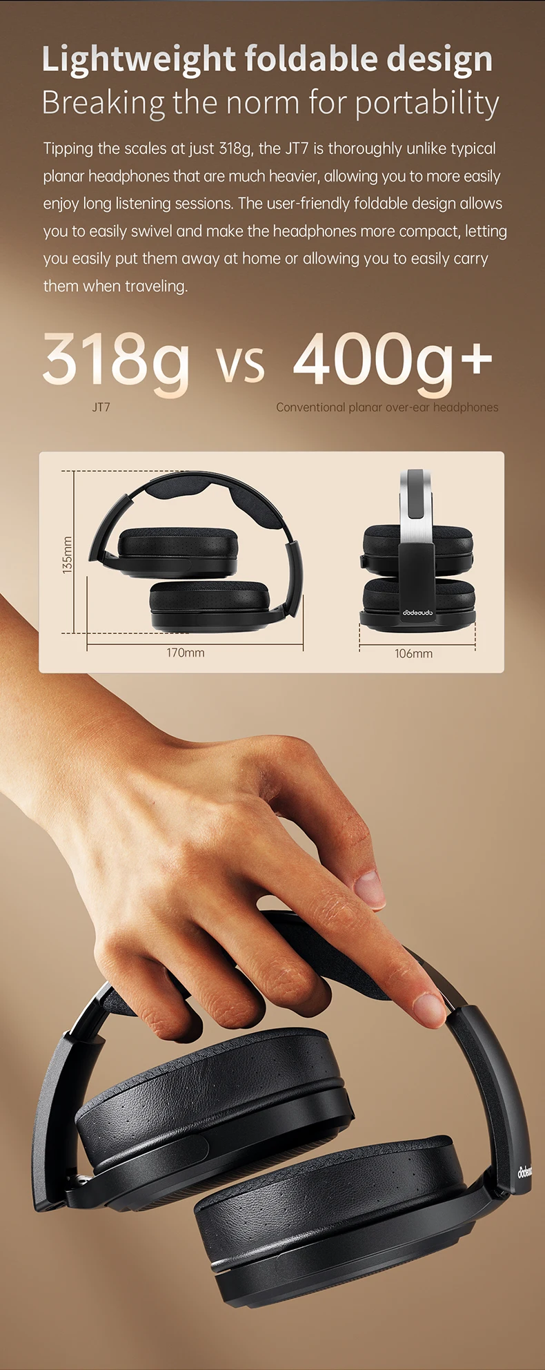 FiiO JT7 has lightweight ergonomics and a foldable design. The pair weighs just 318 grams, and it is super comfortable to wear for long listening sessions. Additionally, the pair has a multi-axis headband that rotates in multiple directions, helping the users find their perfect fit. Furthermore, the pair has a foldable design that will help users carry the pair anywhere they go with ease. FiiO JT7 also has replaceable headband cushion and ear pads, users can customize the set to their liking.