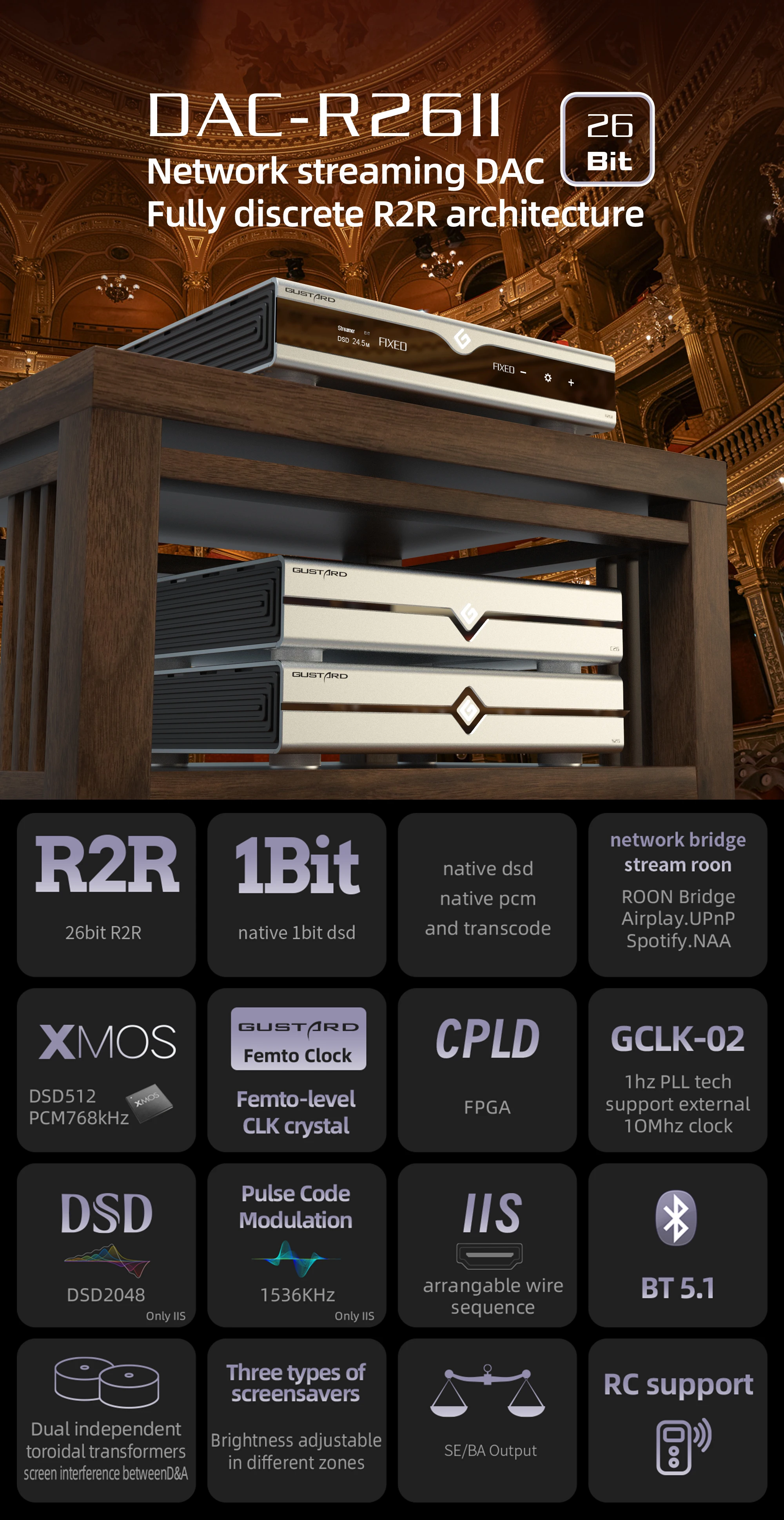 Gustard R26 II / R26II Decoder 26 Bit Network Streamng DAC Fully Discrete R2R BT5.1 with Remote Control