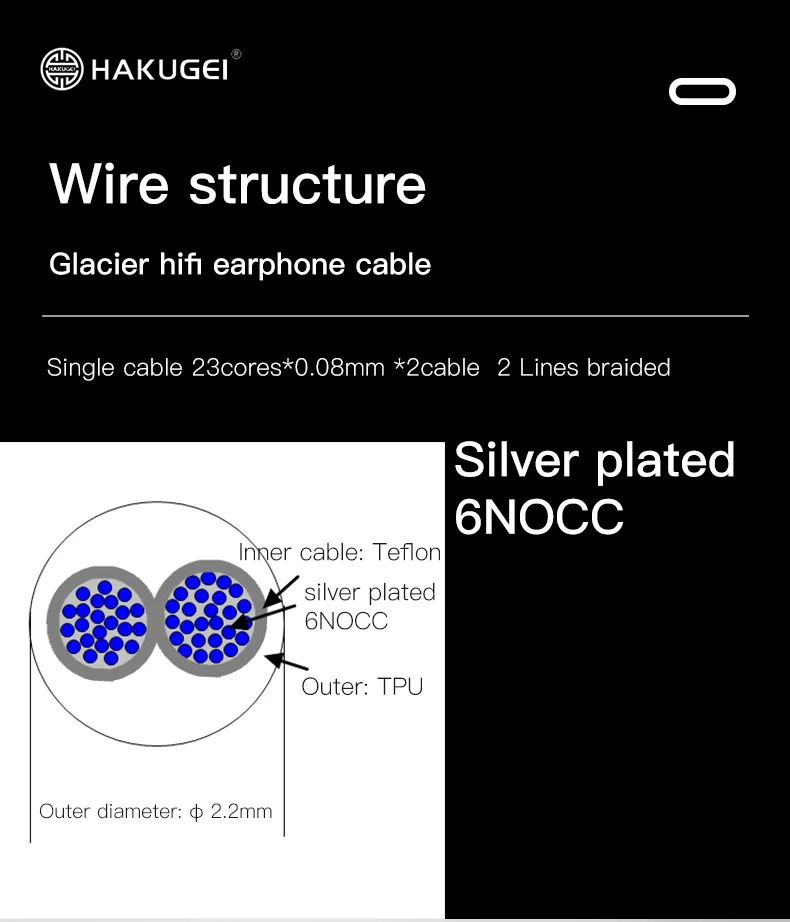 HAKUGEI Glacier 2 Core Silver Plated 6N OCC HiFi Earphone Cable 4.4 3.5 2.5-0.78 MMCX QDC A2DC JH Fitear