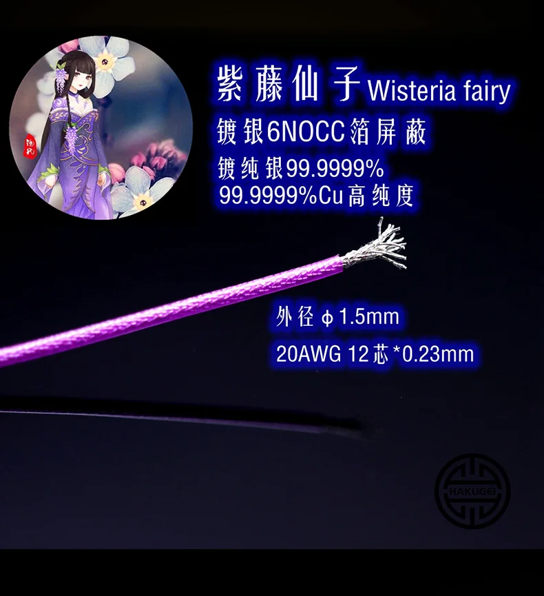 HAKUGEI Wisteria Fairy Silver Plated 6N OCC Earphone Cable 4.4 2.5 0.78 MMCX