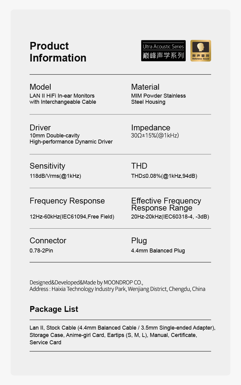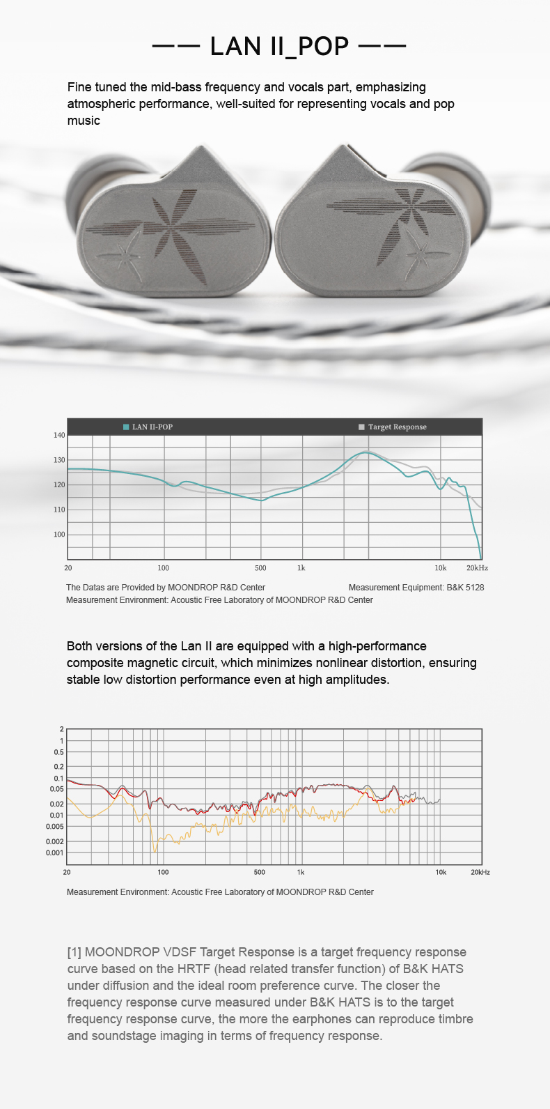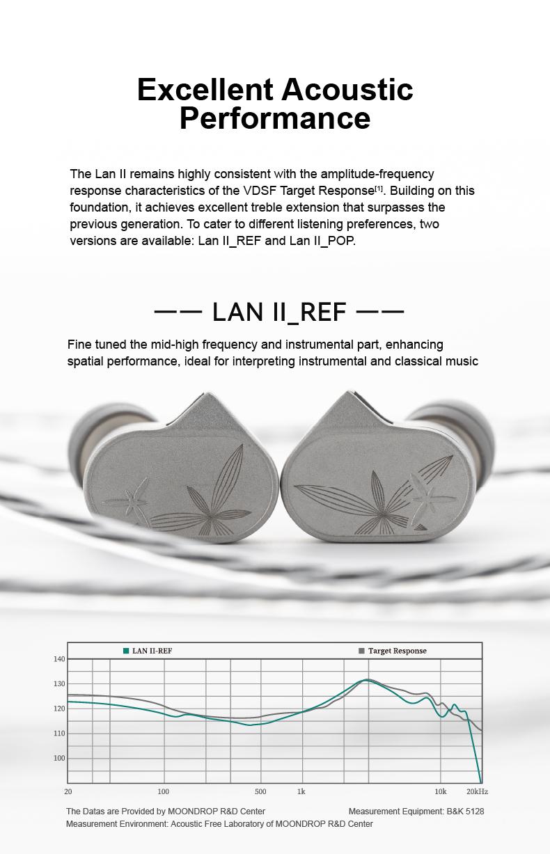 Moondrop Lan 2 is available in two variants, each with individual tuning options: the Moondrop Lan 2 Ref and Moondrop Lan 2 Pop. As you might have guessed, the Lan 2 Ref brings reference-grade sound performance with a focused mid-high frequency. It has exquisite details, clean presentation, and enhanced instrument details. Moondrop Lan 2 Pop takes a different tuning approach; it has more focused mid-bass and vocals frequencies, promising powerful lower end and forward vocals. Choose the tuning that suits your personal taste and listening preferences.