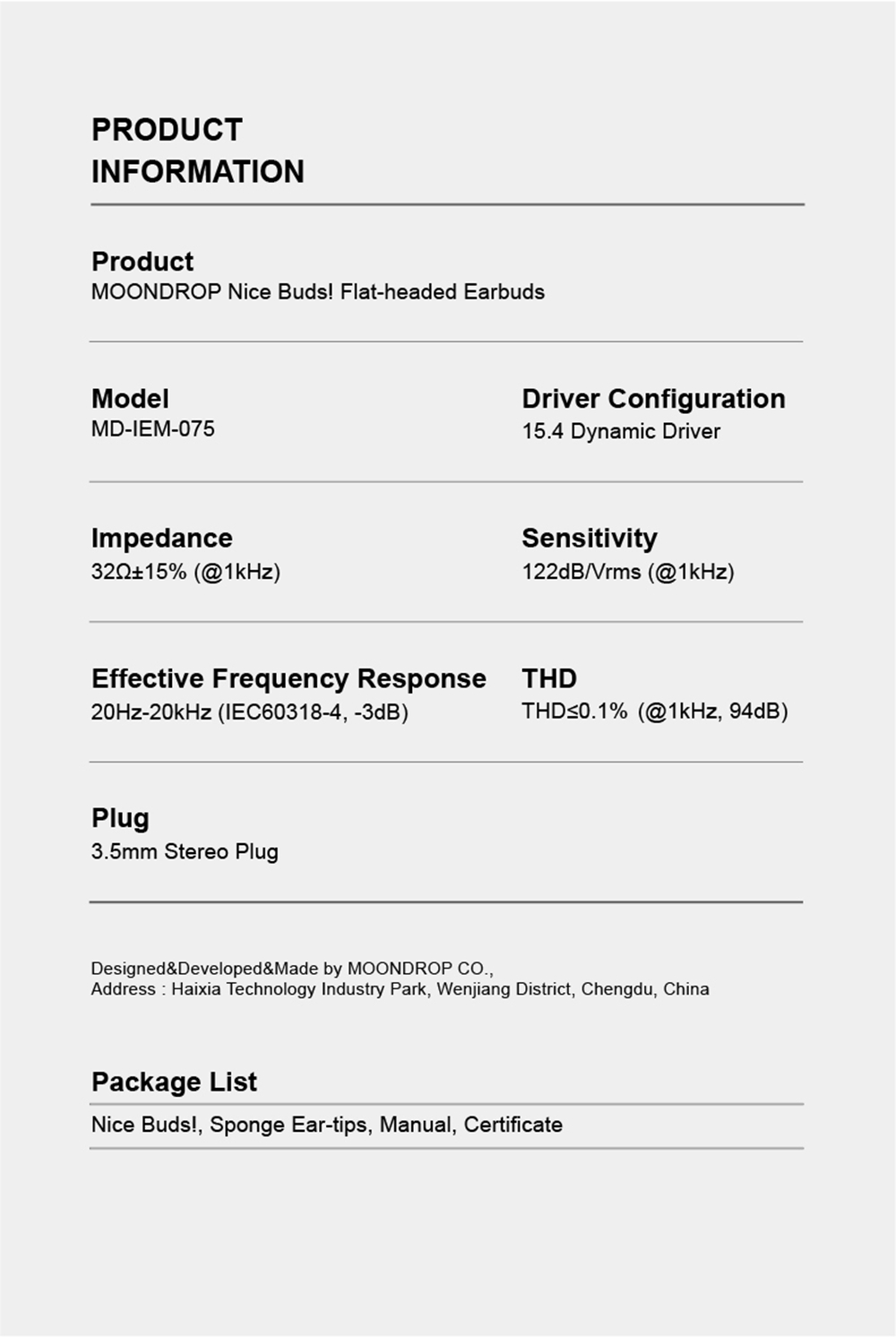 Moondrop NiceBuds 15.4mm Dynamic Driver Flat-Headed Earbuds