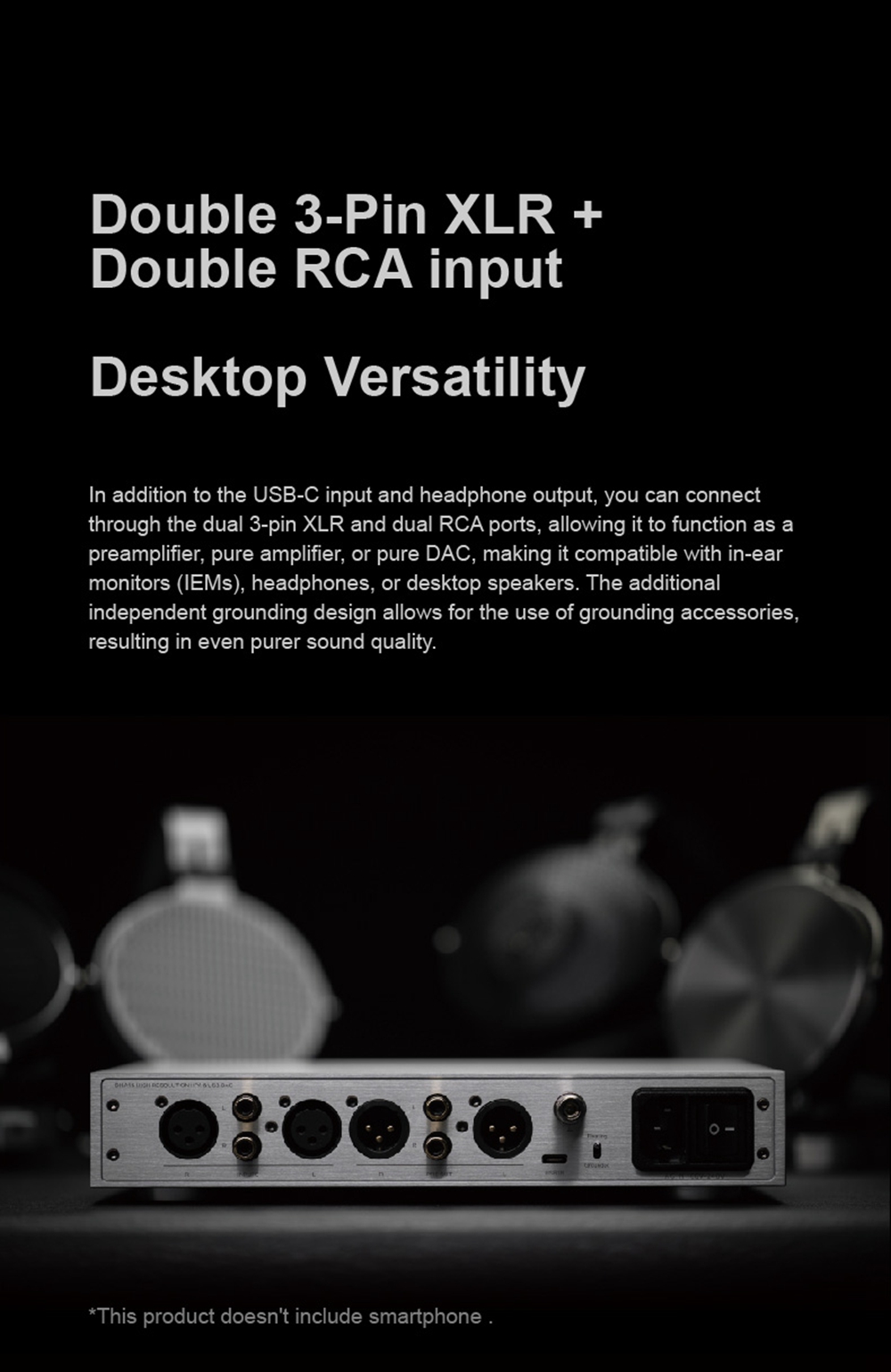 >Three Input Options(USB-C+XLR+RCA).