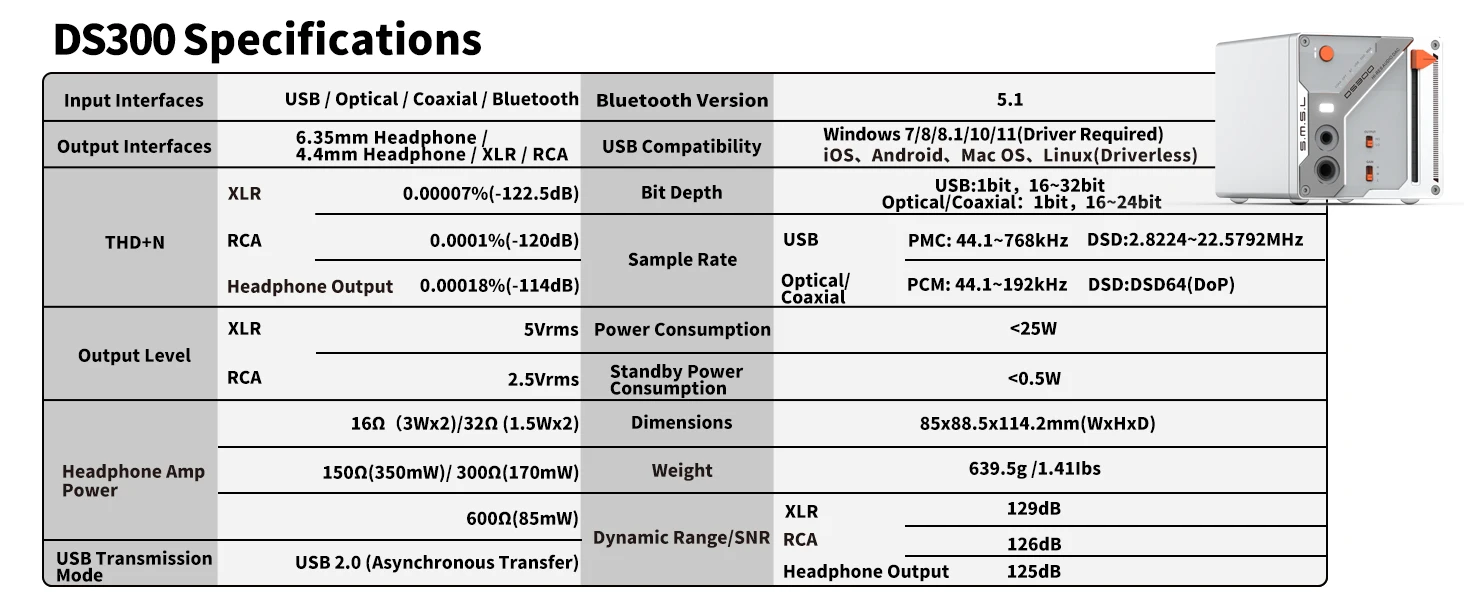 SMSL DS300 High-Performance MQA DAC & Headphone Amplifier