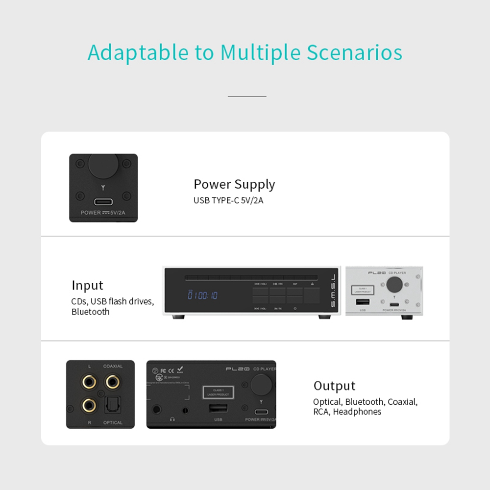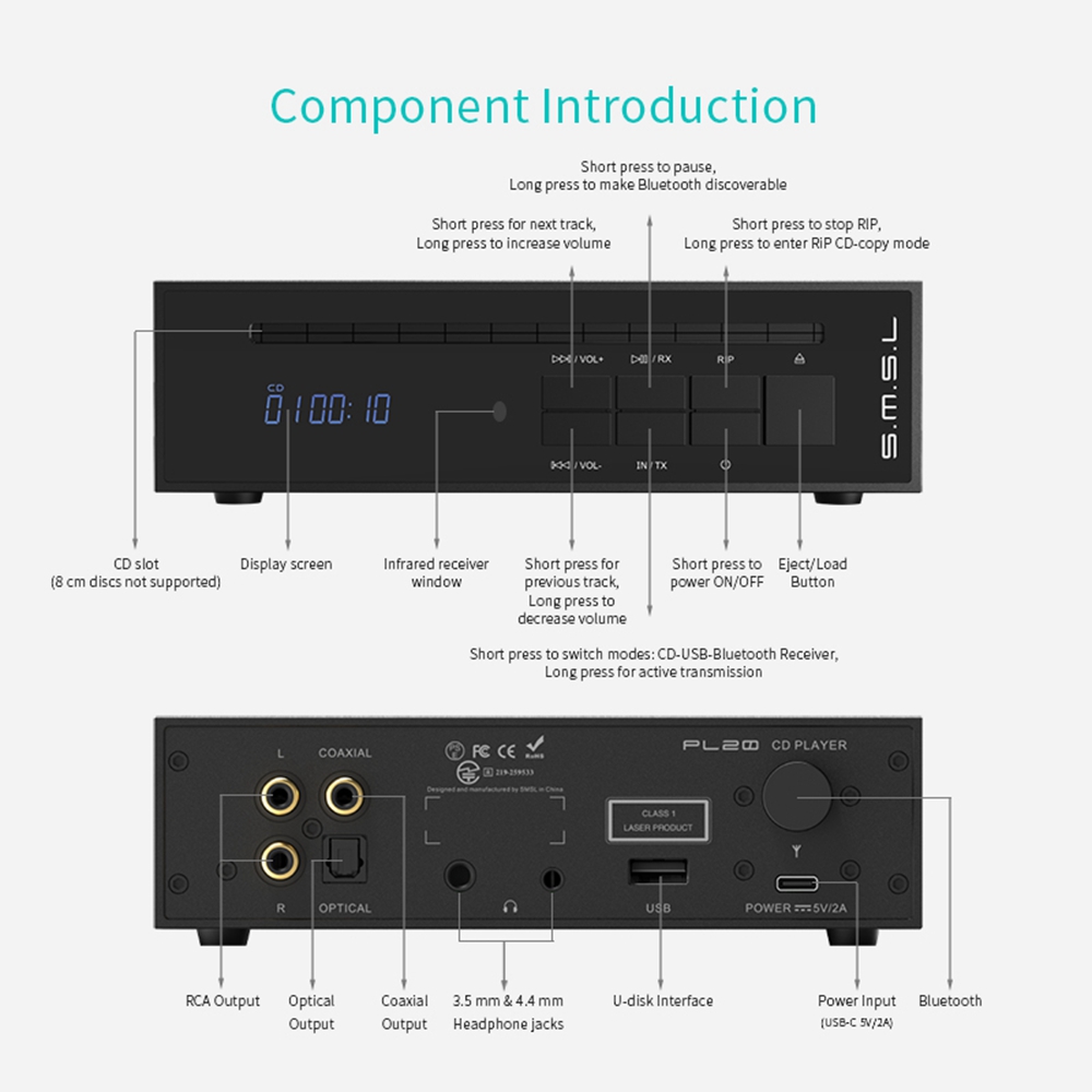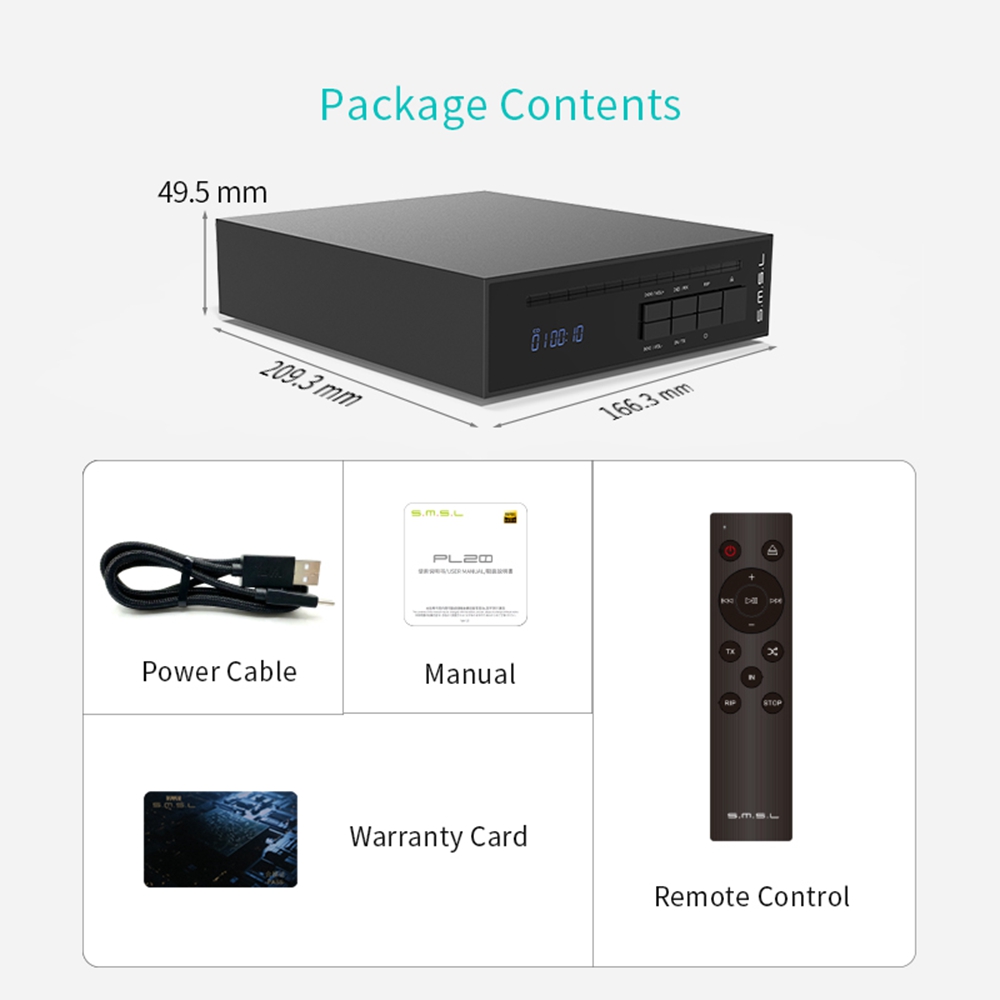 SMSL PL20 is not just a CD Player, it acts as a three-in-one device, allowing the user complete versatility. One can use the device as a CD Player, a digital audio player with high-resolution music playback from flash drives, and a lossless CD Ripping device. Simply enjoy your favourite music any way you like.