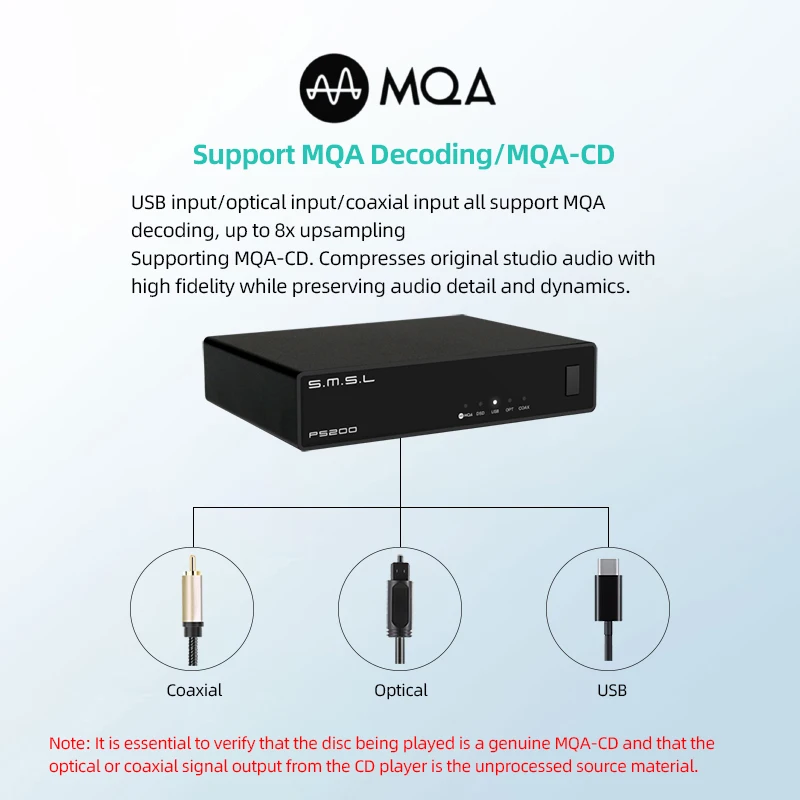Don’t get fooled by the compact design of the PS200 Pro; the device provides full high-resolution audio signal processing. It supports 32-bit/768kHz PCM and native DSD512 audio signal processing. Additionally, we also have MQA and MQA-CD decoding support. Users can pair their MQA-enabled CD-players using Coaxial or Optical connections and enjoy studio-grade sound decoding with the PS200 Pro.