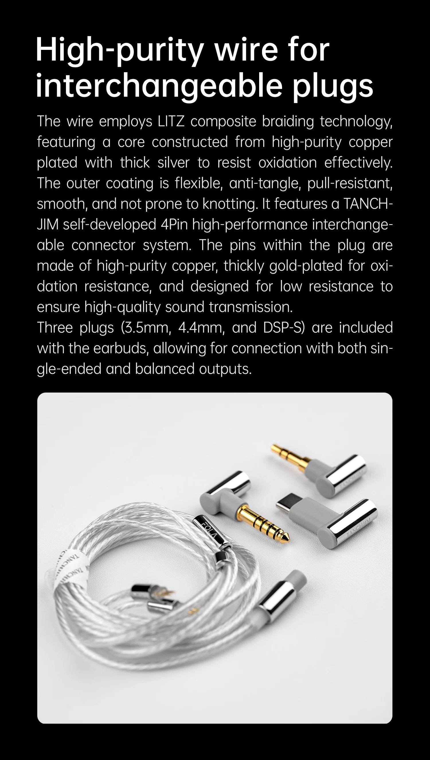 Wire Specification: Interchangeable connector, with 3.5mm, 4.4mm, DSP-S plug available