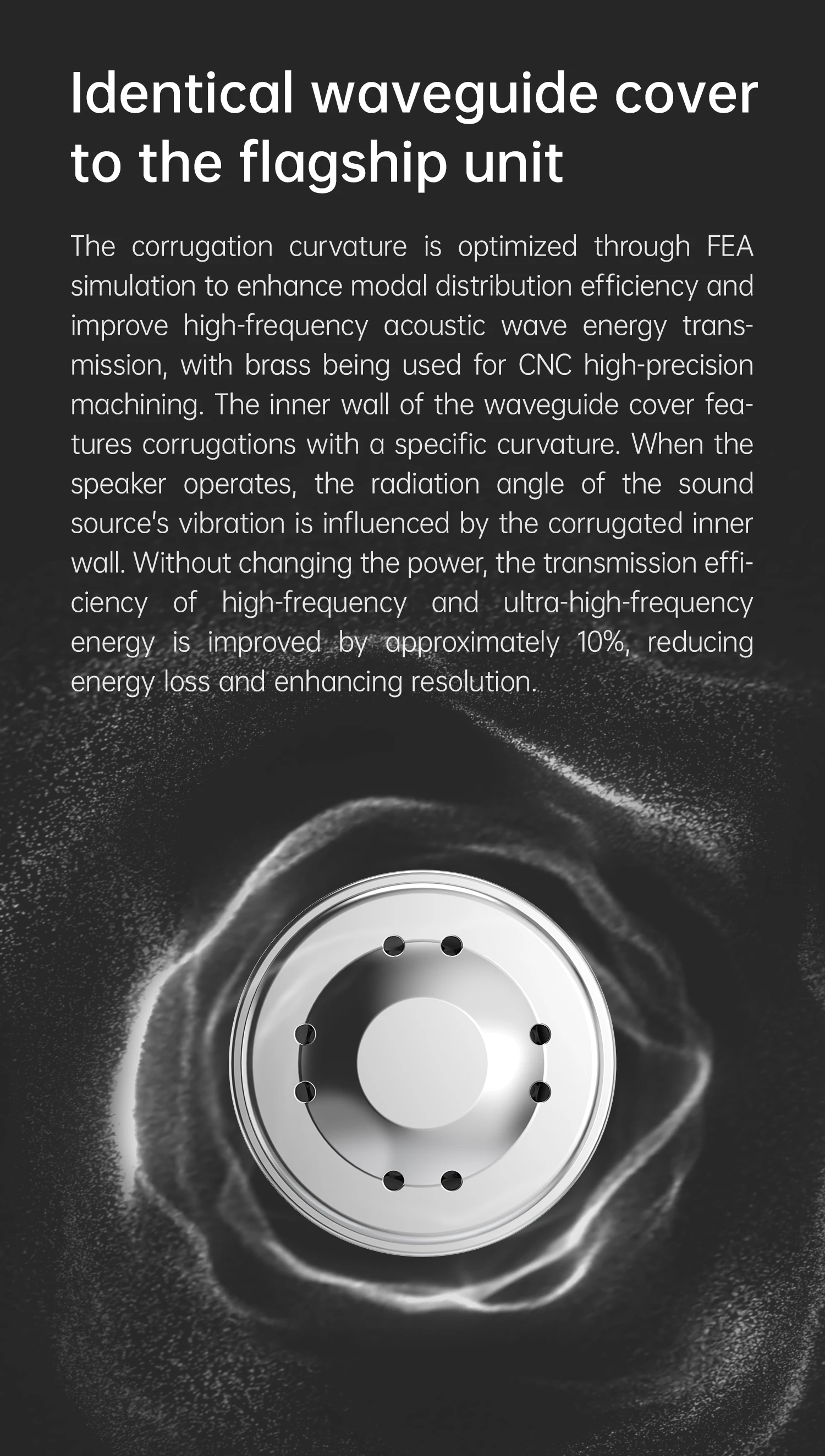 FOLA’s flagship waveguide cover is designed to enhance high-frequency transmission efficiency. Using advanced FEA simulation, the waveguide cover optimizes the sound’s modal distribution, improving the energy transmission of high and ultra-high frequencies by up to 10%. This results in a more detailed and clear sound, reducing energy loss and enhancing overall resolution.
