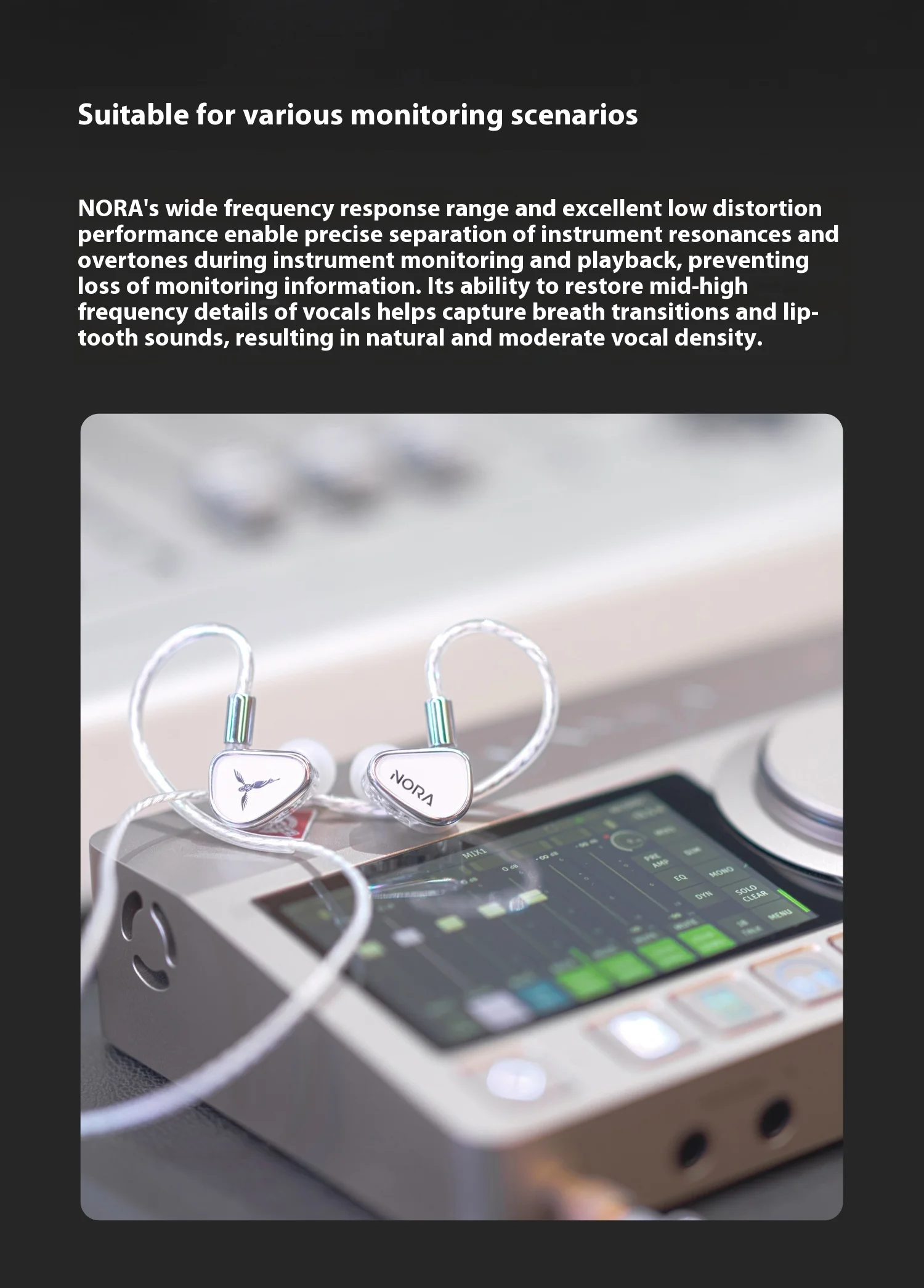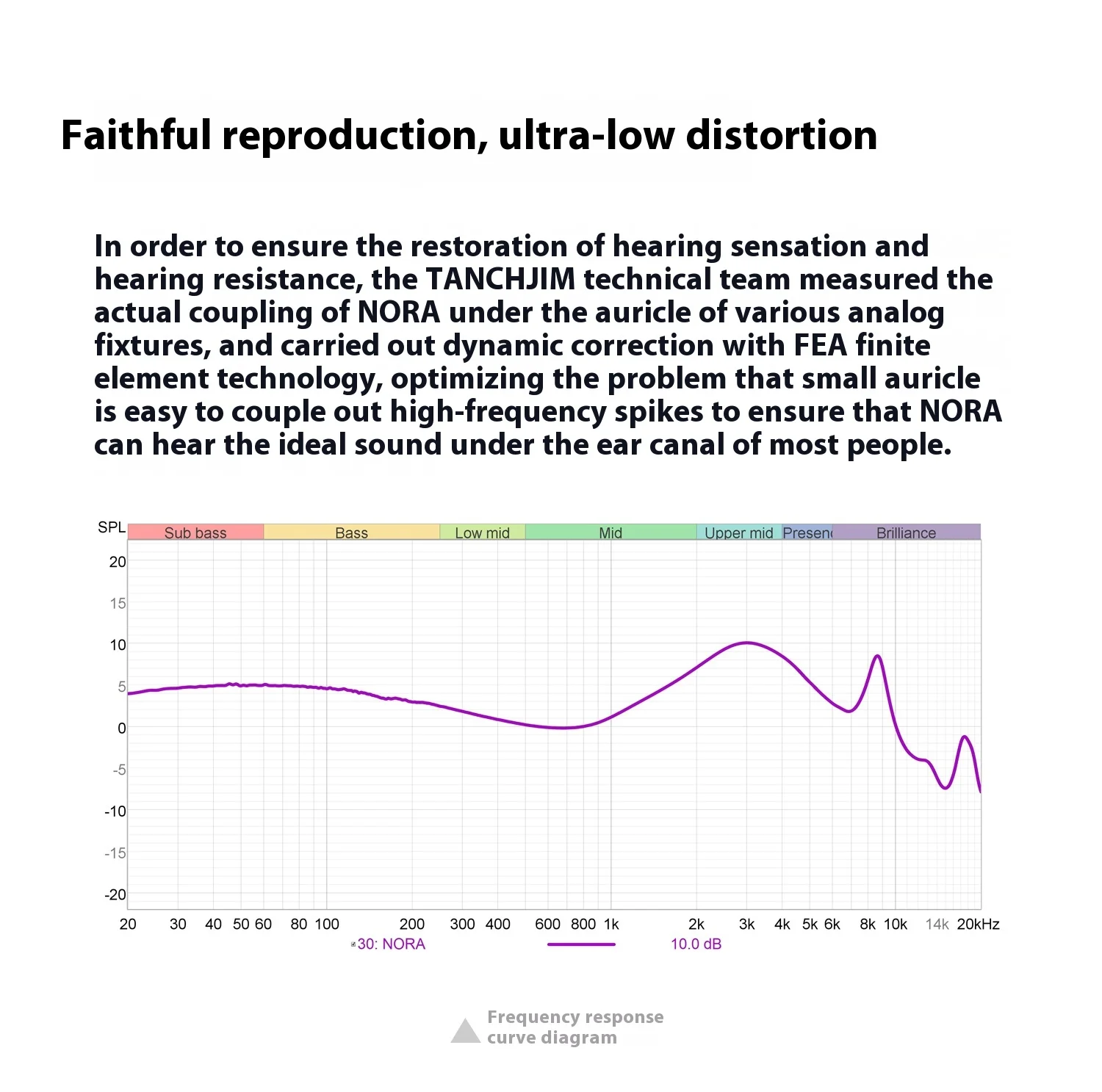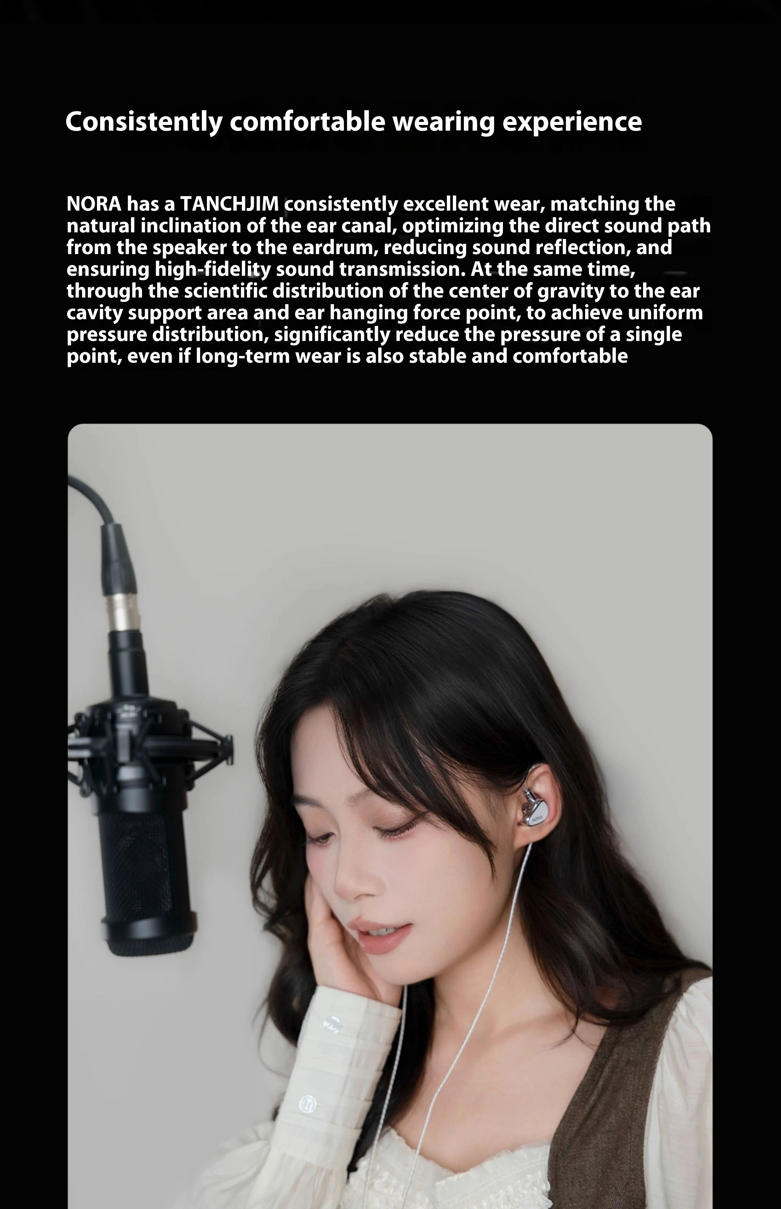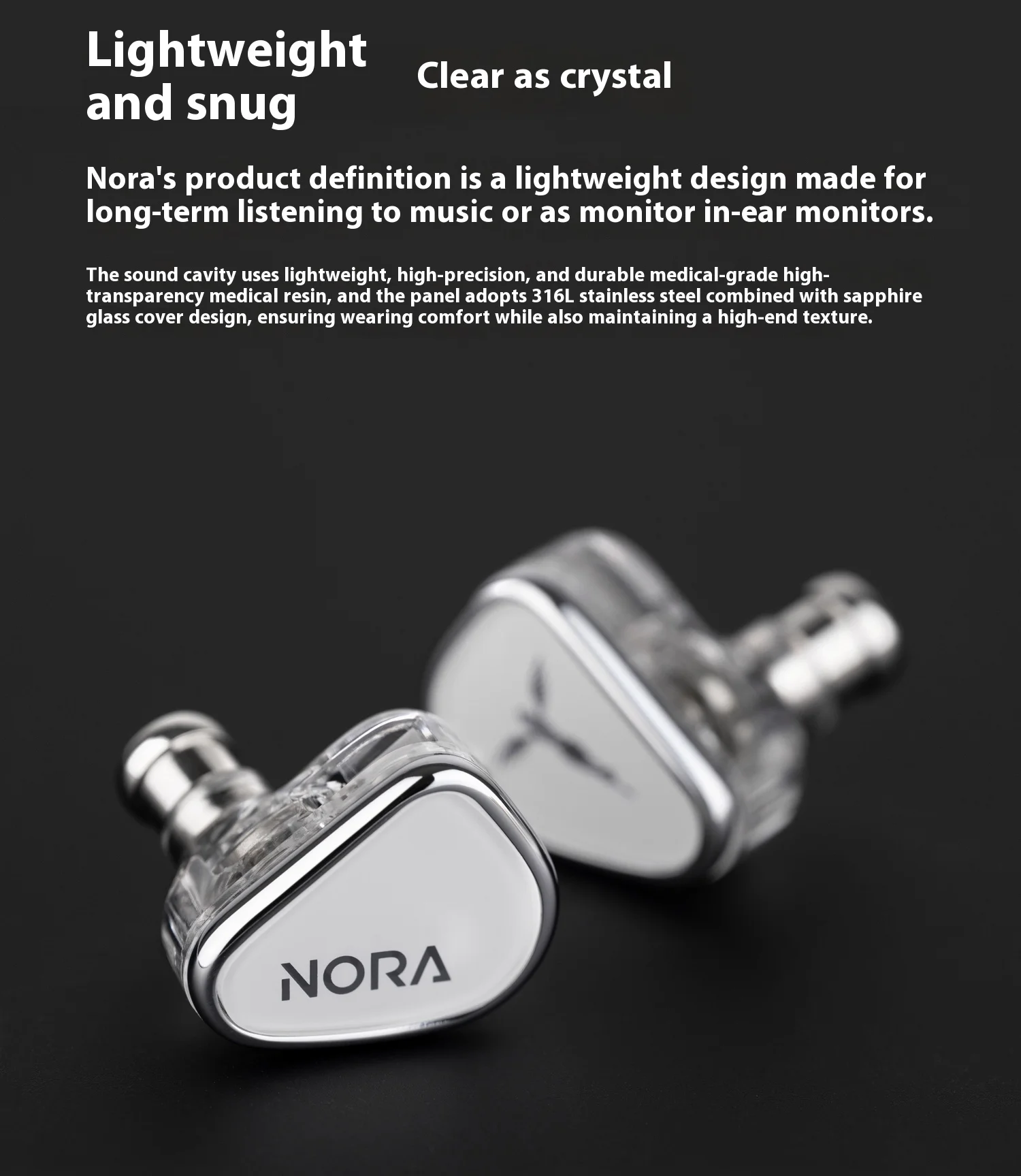 Tanchjim welcomes the all-new Nora, a high-fidelity pair of in-ear monitors designed for audiophiles. Tanchjim Nora features a DMT5 architecture dual-magnetic, dual-cavity dynamic driver unit. It utilizes a PU suspension DLC ball-top composite diaphragm for a clear, clean sound reproduction. Tanchjim Nora is the Tanchjim’s first IEM with HiFi monitoring tuning, it is tuned specifically for a balanced sound profile. Tanchjim has designed the Nora with an ultra-compact design; the shells are extremely lightweight. They feature a specially-designed external vented structure which maintains the ear pressure buildup and enhances the overall comfort and sound response. Tanchjim Nora features a Helmholtz resonator rear cavity design featuring a semi-open cavity structure. In order to smooth out the internal sound wave resonance, Tanchjim has designed the inner cavity with a super smooth surface. Tanchjim Nora is an IEM that you will fall in love with, especially for its lightweight build, smooth, lively sound profile, and easy drivability. Experience the amazing sound of Tanchjim Nora today!!