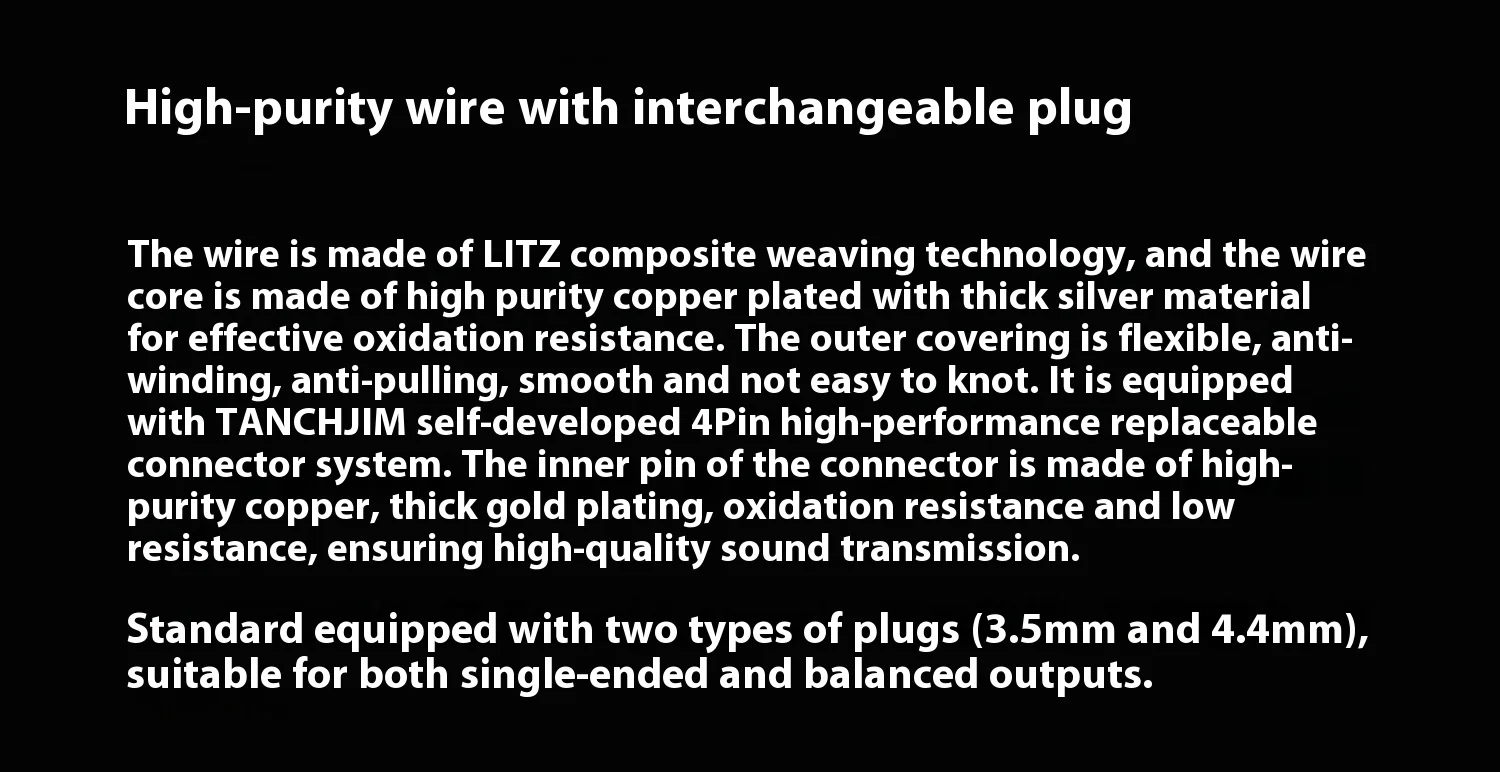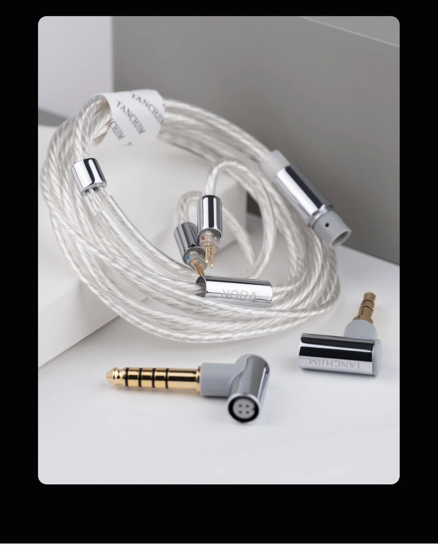 Tanchjim includes a high-purity silver-plated copper cable in a Litz composite woven structure. The cable has a flexible outer insulation which protects the sound signal from external interferences. It adopts standard 0.78mm 2-pin connectors, and interchangeable termination plugs system with 3.5mm and 4.4mm plugs in the package.