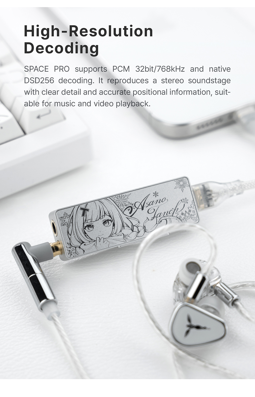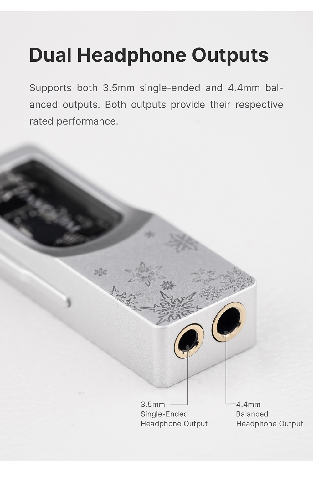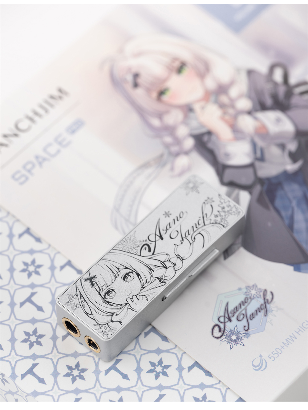 Tanchjim Space series has always been about compact and lightweight portable DAC/AMPs. The latest Space Pro follows that classic theme and offers a minimalistic design with a seamless body profile carved using a CNC-machined aerospace-grade aluminum alloy chassis and a transparent window. There are two variants available for the Space Pro, Standard variant offering a simple build, and the Asano-Tanch Snowfall edition, which features enhanced craftsmanship with high-precision laser engravings on the front and back surfaces. Tanchjim Space Pro comes with a detachable cable made up of high-quality silver-plated single-crystal copper wire conductors.