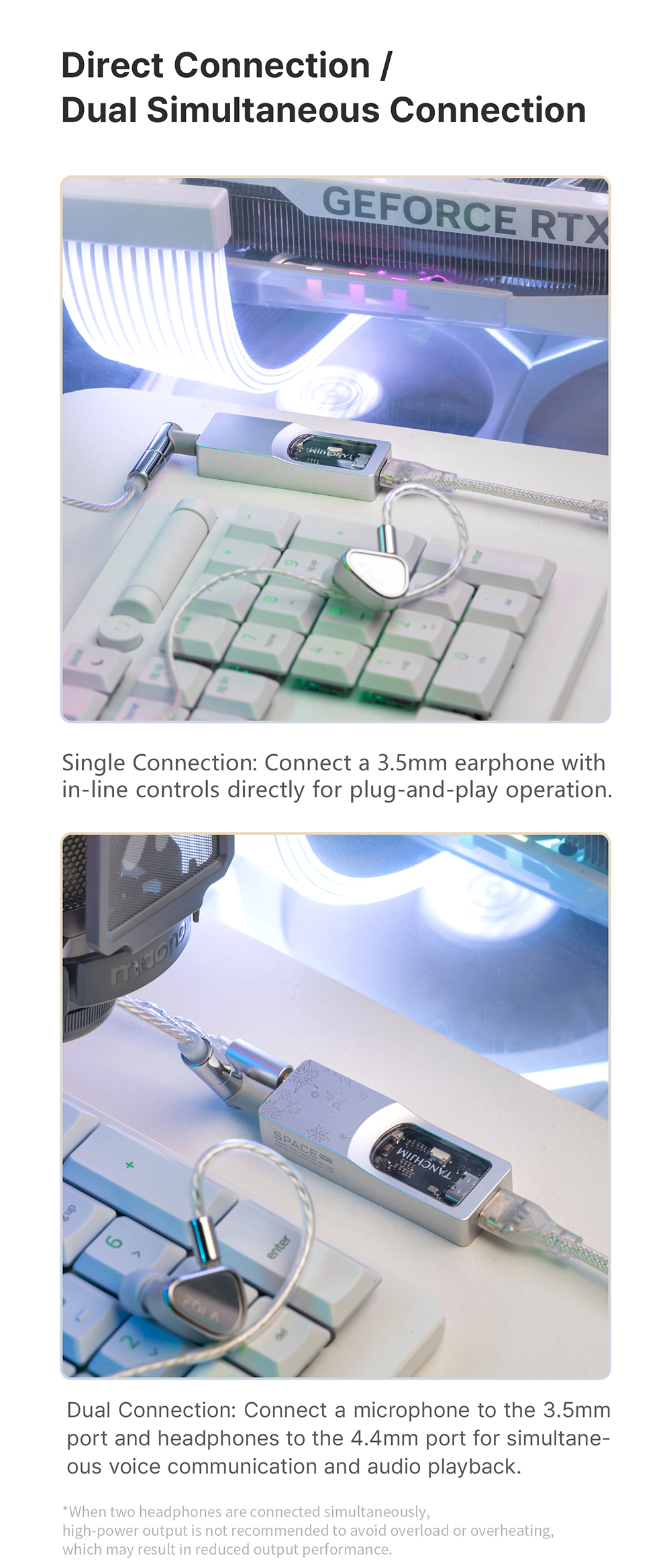 >Dual Port Simultaneous Connection(4.4mm for Output+3.5mm for Mic Input).