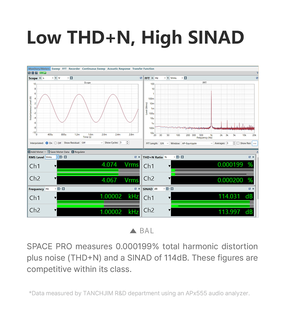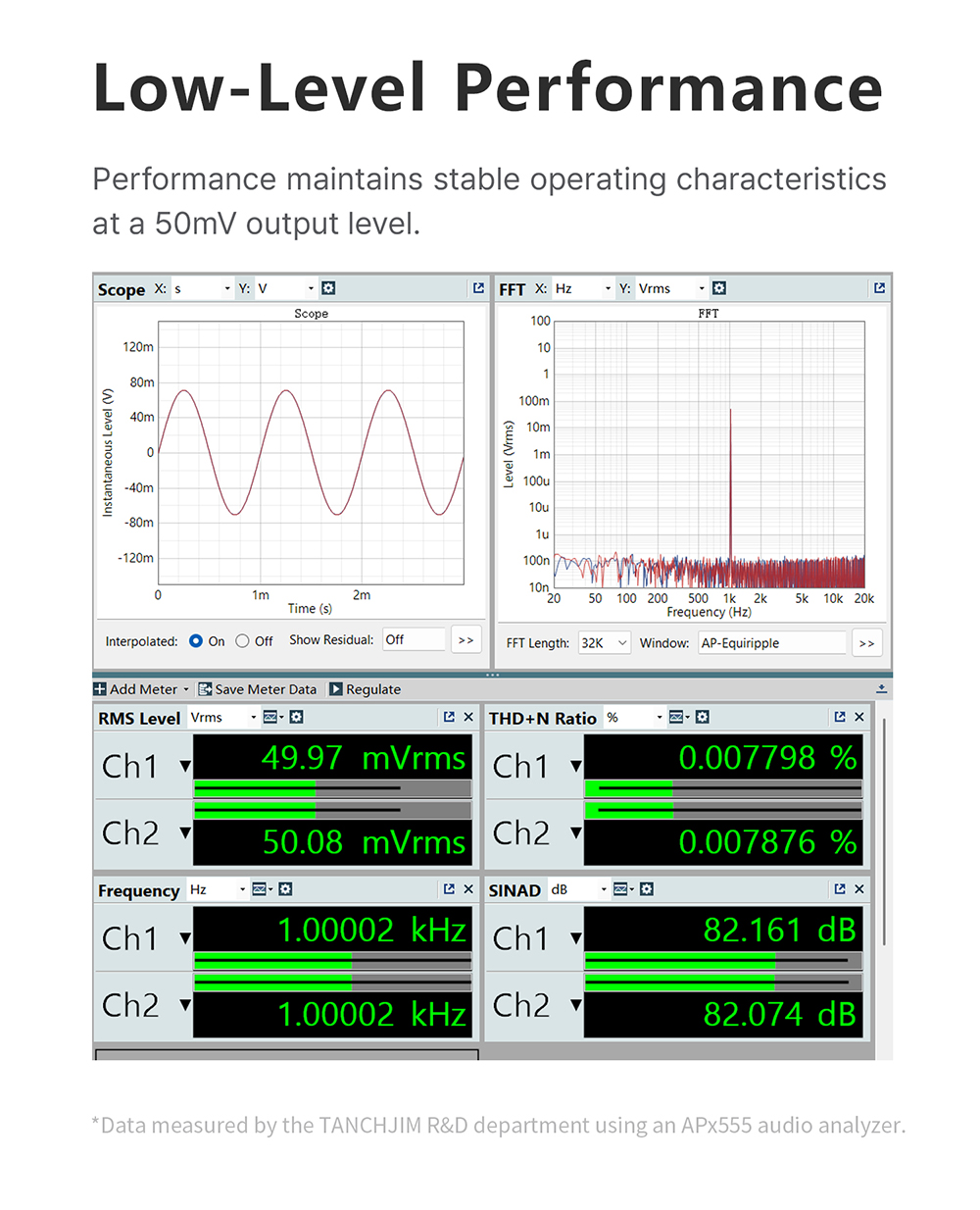 >Clean and Precise Output with Ultra-low THD+High Dynamic Range.