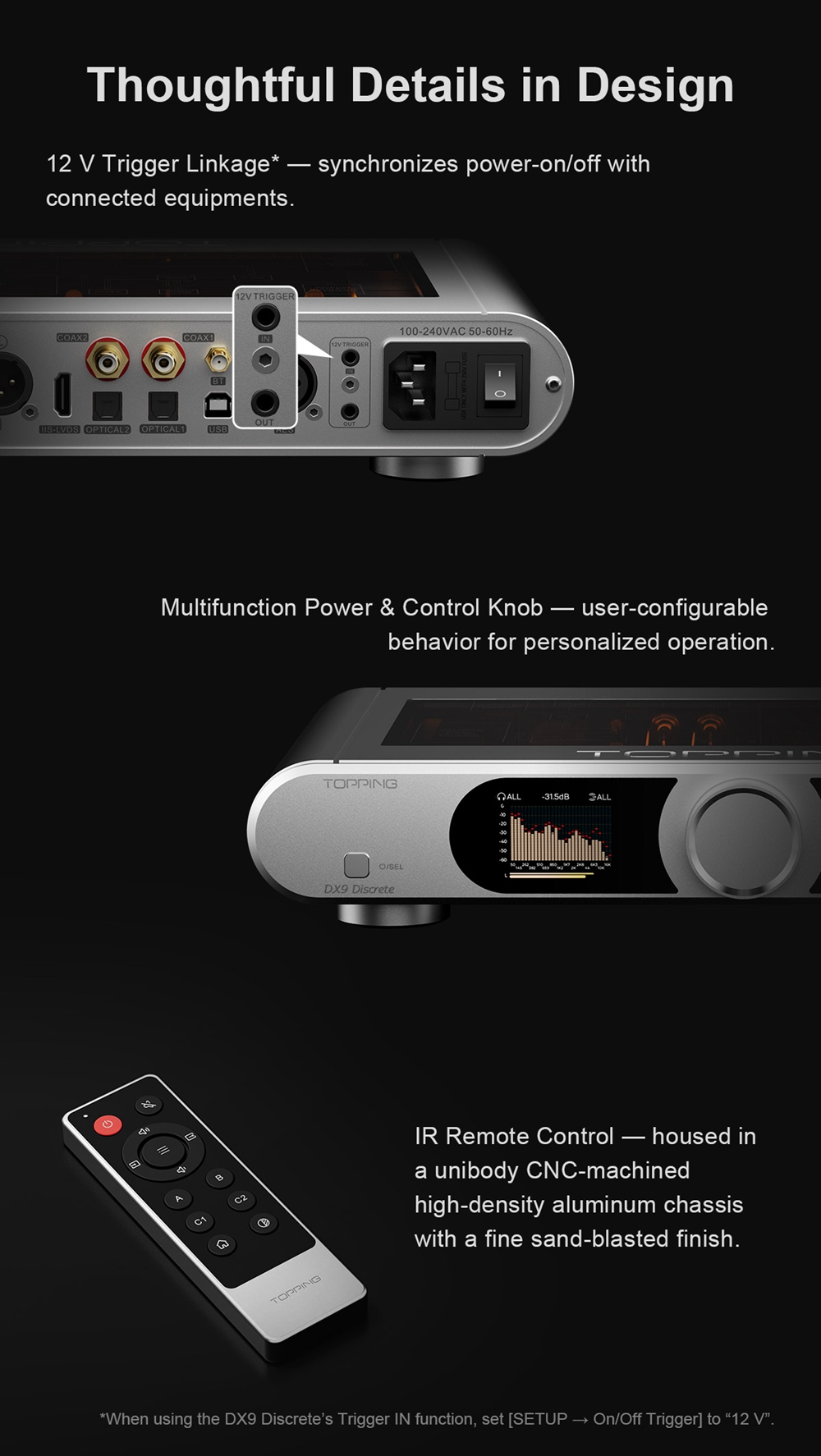 >Multi-Function Knob and IR Remote Control.