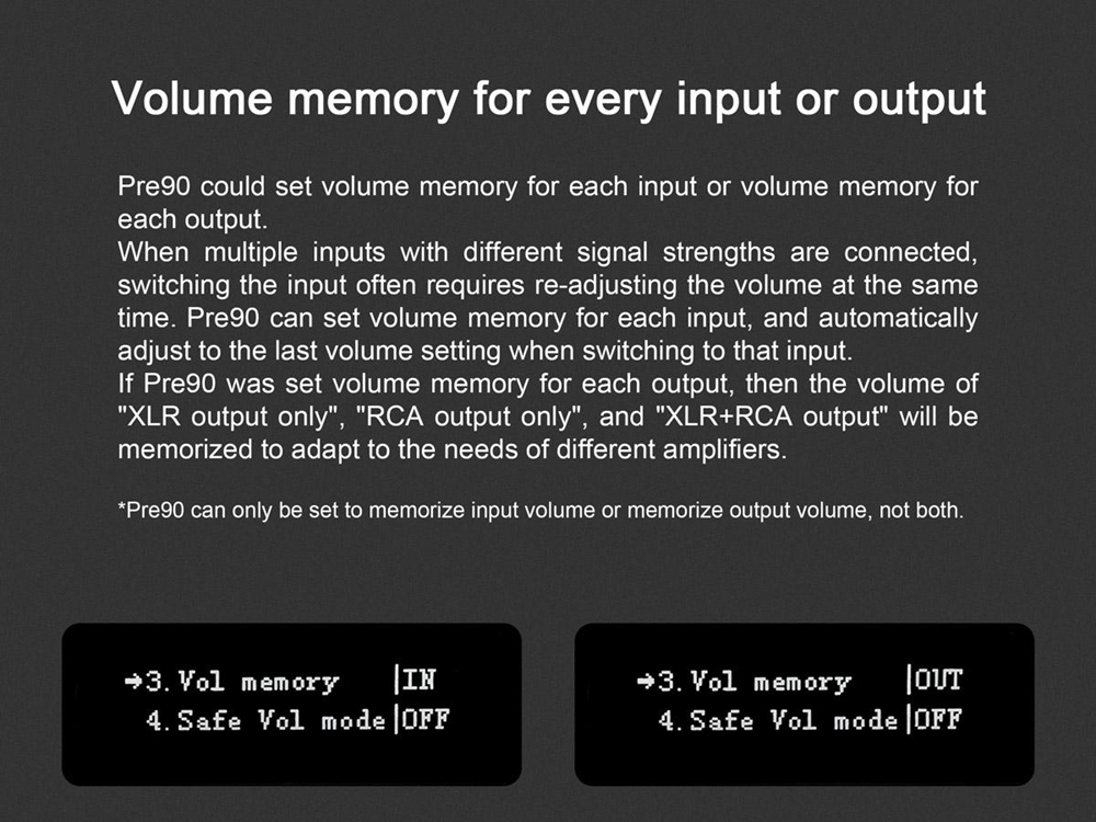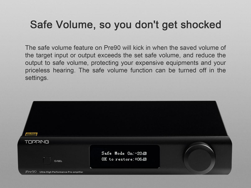 The Pre90 features a safe volume option that kicks in when the set safe volume exceeds the target input/output port. It saves up your costly pieces of equipment from damage due to sudden high volumes. This feature can also be turned off from the settings menu using the remote control.