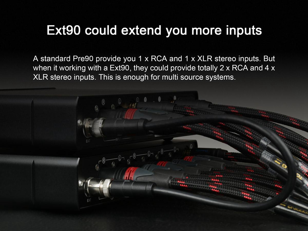 With the help of Topping Ext90, you can connect multiple sources with the Pre90 at once. On itself, the Pre90 features one single-ended RCA and one balanced XLR input but with the Ext90, it can be connected with up to two RCA inputs and four XLR inputs. The active input source can be selected easily using the included remote control. Moreover, the Pre90 remembers your volume settings for different input/output ports so be assured of that too!!