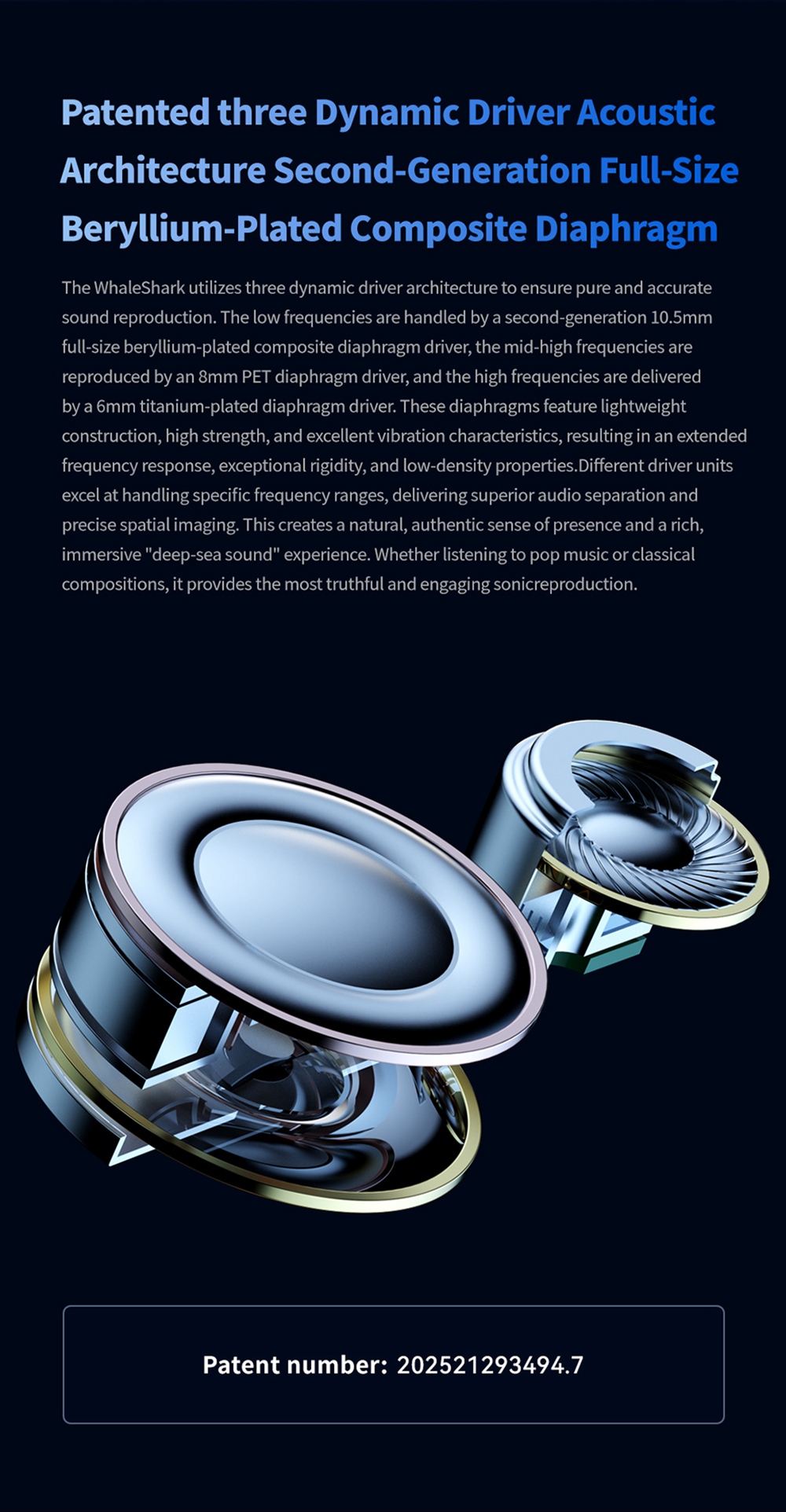 >10.5mm Second-Generation Full-Size Beryllium-Coated Composite Diaphragm Dynamic Driver.
